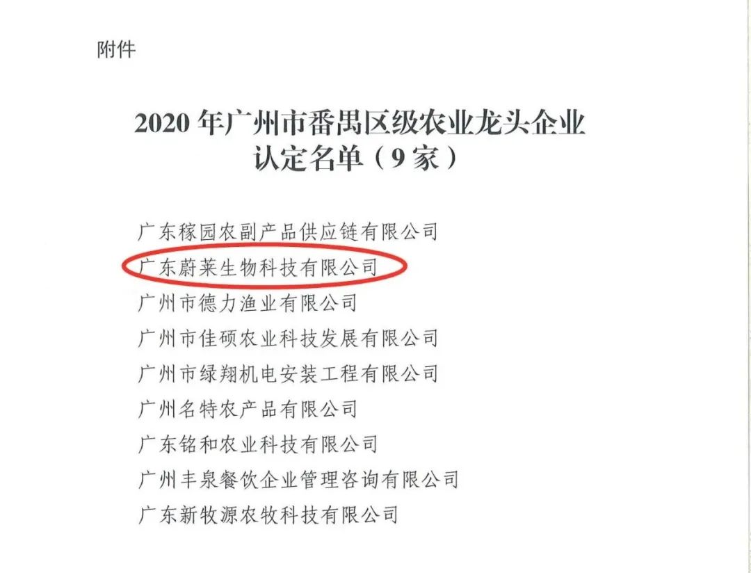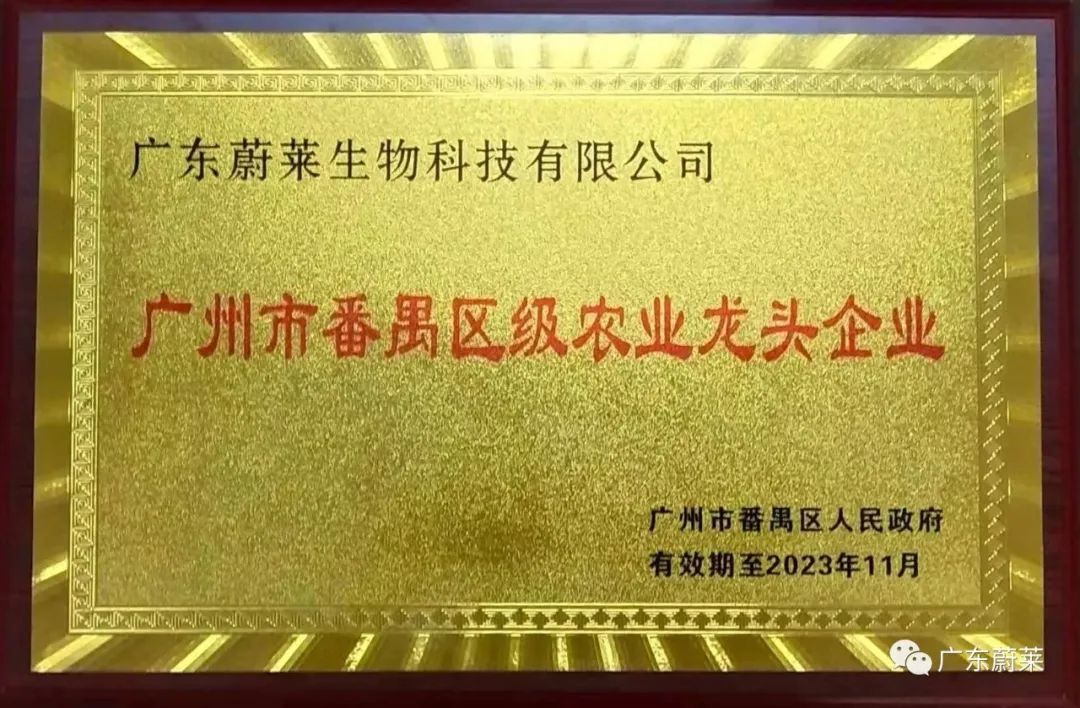 廣東蔚萊生物獲評(píng)番禺區(qū)龍頭企業(yè)